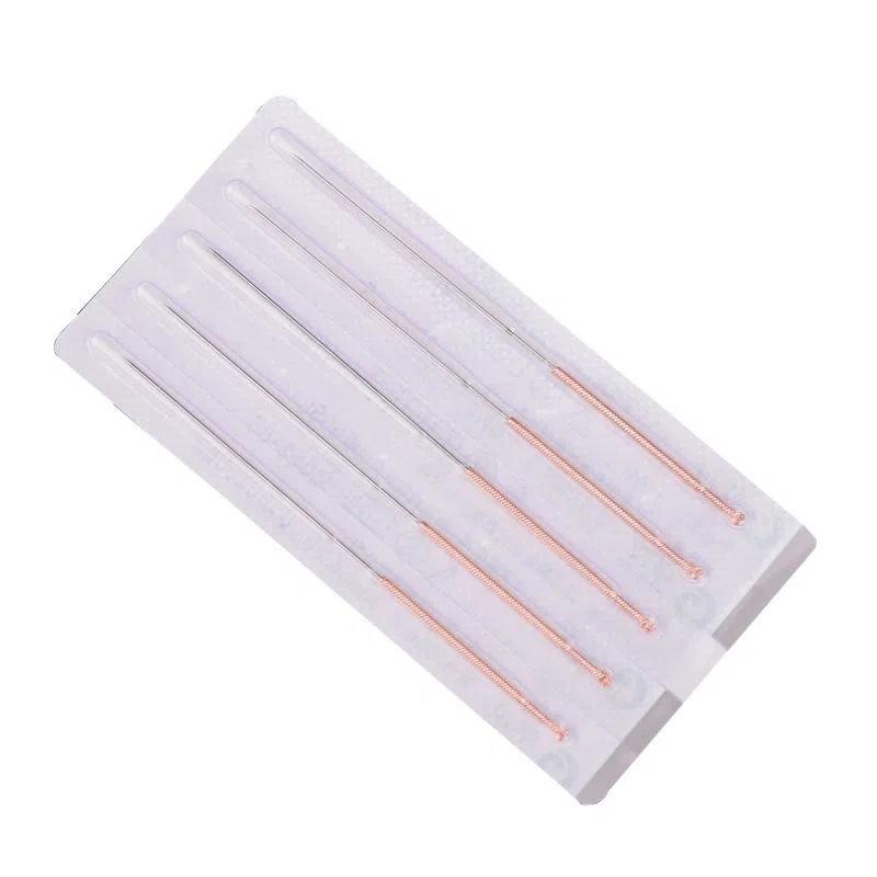 เข็มฝังเข็มฮวยโหย่วหยวนลี่ ผลิตจากเหล็กกล้าไร้สนิมทางการแพทย์ ใช้แล้วทิ้ง ปลอดเชื้อ พร้อมด้ามจับทองแดง บรรจุ 100 ชิ้นต่อกล่อง