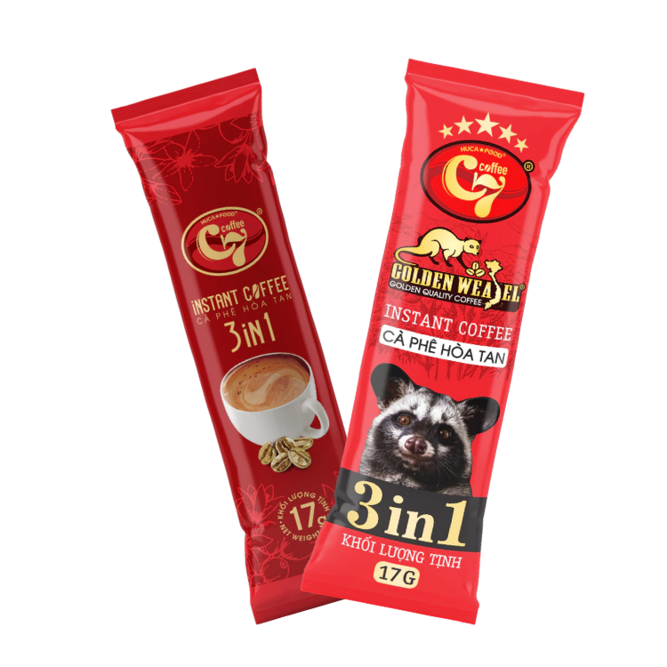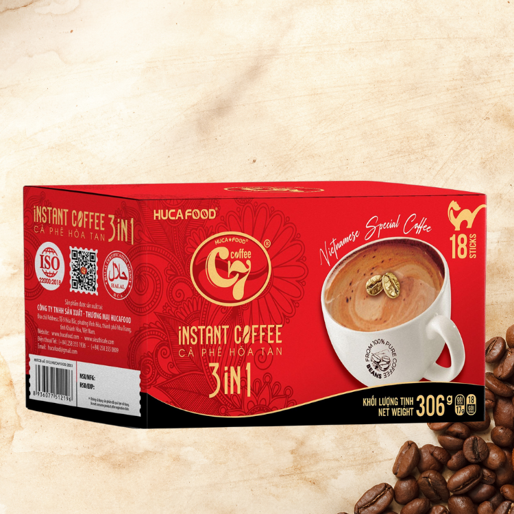 Hucafood กาแฟสำเร็จรูป3-in-1จากเวียดนามรสช็อกโกแลตบรรจุกล่องพร้อมครีมเทียมเกลือน้ำตาลในทุกแท่งรสที่เป็นกลาง