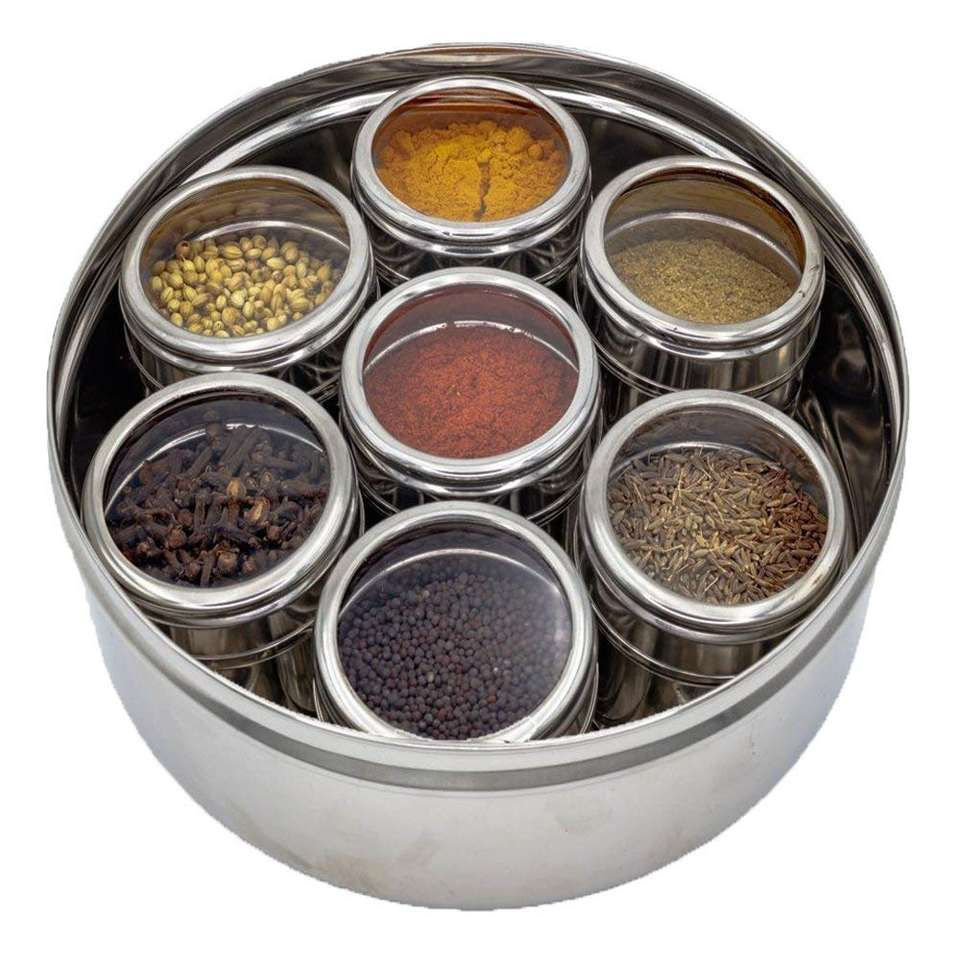คำอธิบาย:ภาชนะบรรจุเครื่องเทศ Masala เครื่องมือในครัว