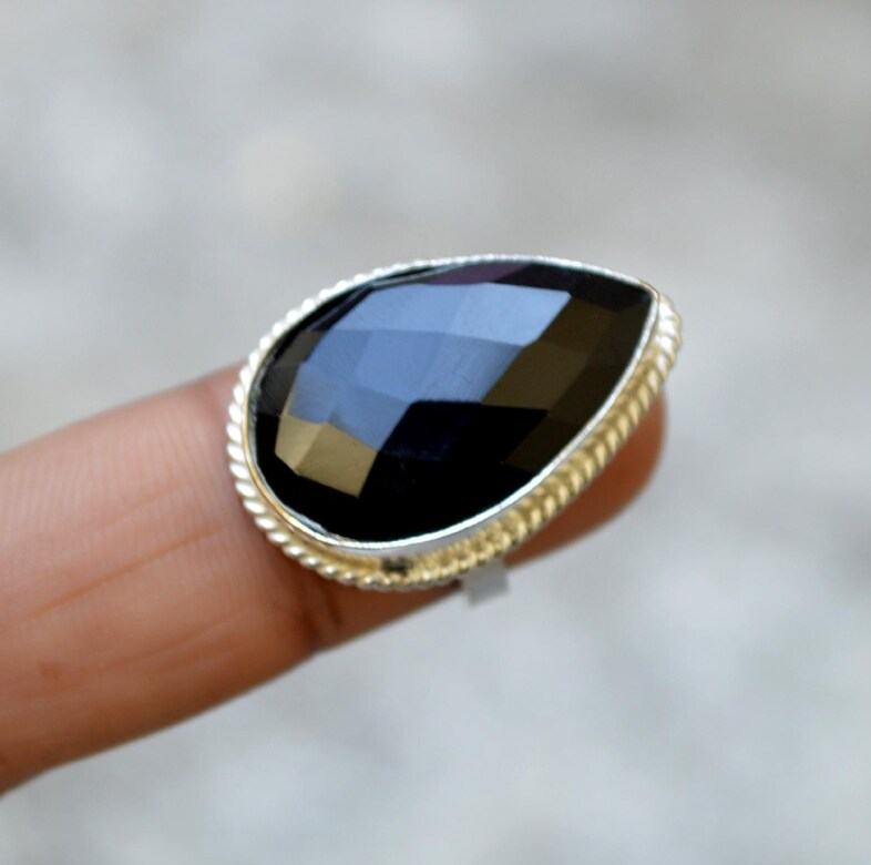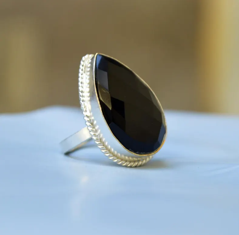 แหวนของขวัญแต่งงานทำจากเงินสเตอร์ลิงมีสไตล์925ลูกแพร์ขนาดใหญ่ตัดด้วยพลอยสีดำนิลแข็งข้อความธรรมชาติฮิปฮอปคริสเตียน