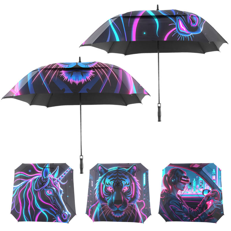 ร่มกอล์ฟทรงสี่เหลี่ยมขนาดใหญ่แบบโมเดิร์นร่มสองชั้นขนาดใหญ่ขนาดใหญ่ขนาดใหญ่ร่มกันลมมีโลโก้ UV แบบกึ่งอัตโนมัติ
