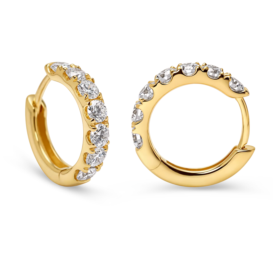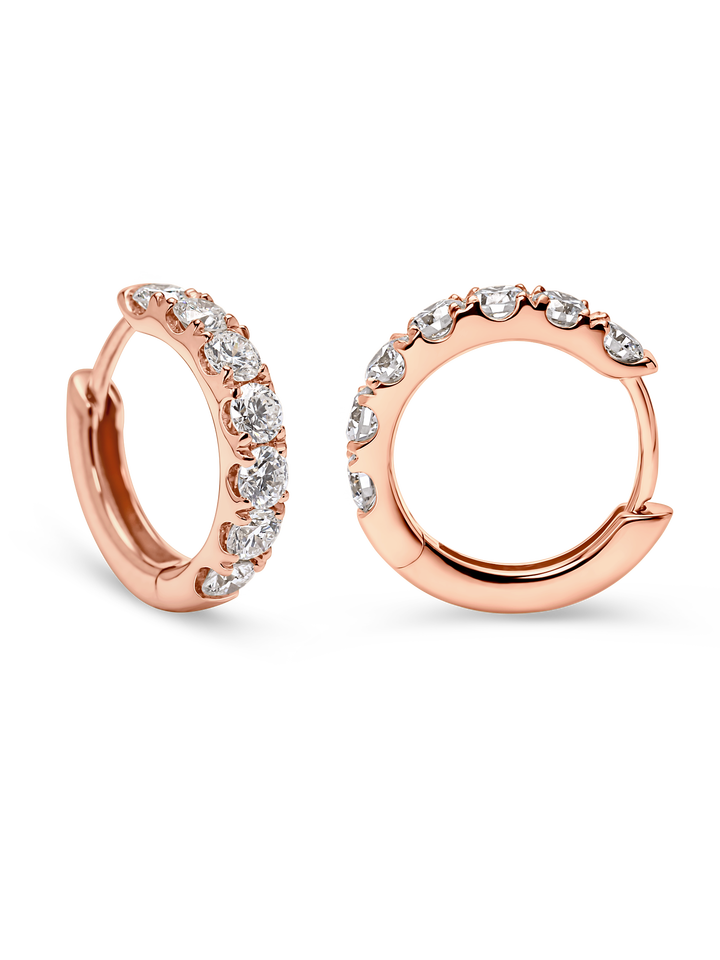 ต่างหูแบบห่วงประดับเพชรแล็บโกรว์ 0.5 กะรัต ทรงกลม ดีไซน์ทองคำ 18K สีเหลือง ขาว และโรสโกลด์