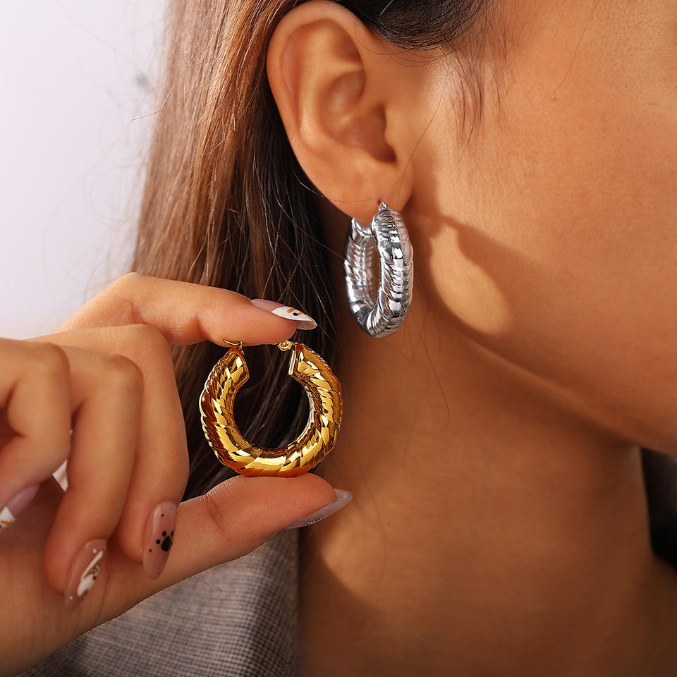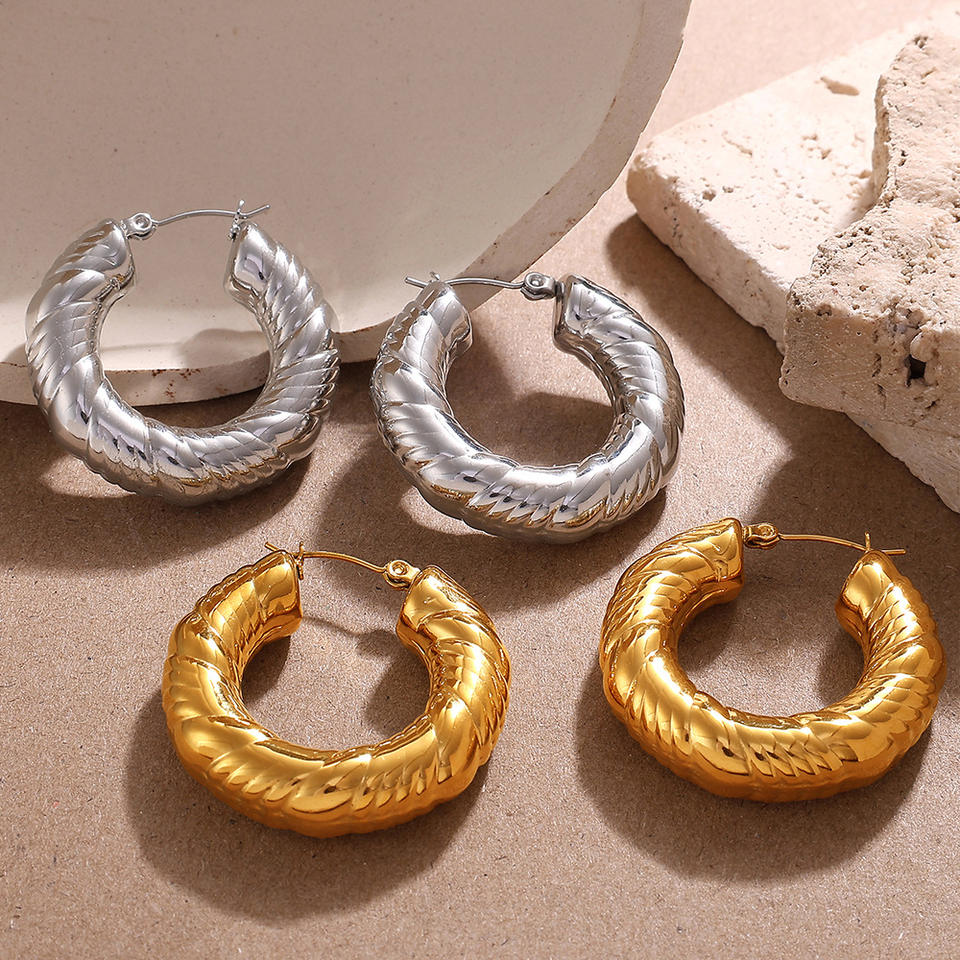 ต่างหูแบบห่วงรูปตัวยู ผิวสัมผัสพิเศษ ชุบทองคำขาวและเงิน ทำจากสแตนเลสสตีล 18K เหมาะสำหรับใส่ทุกวัน เครื่องประดับแฟชั่นสำหรับผู้หญิง