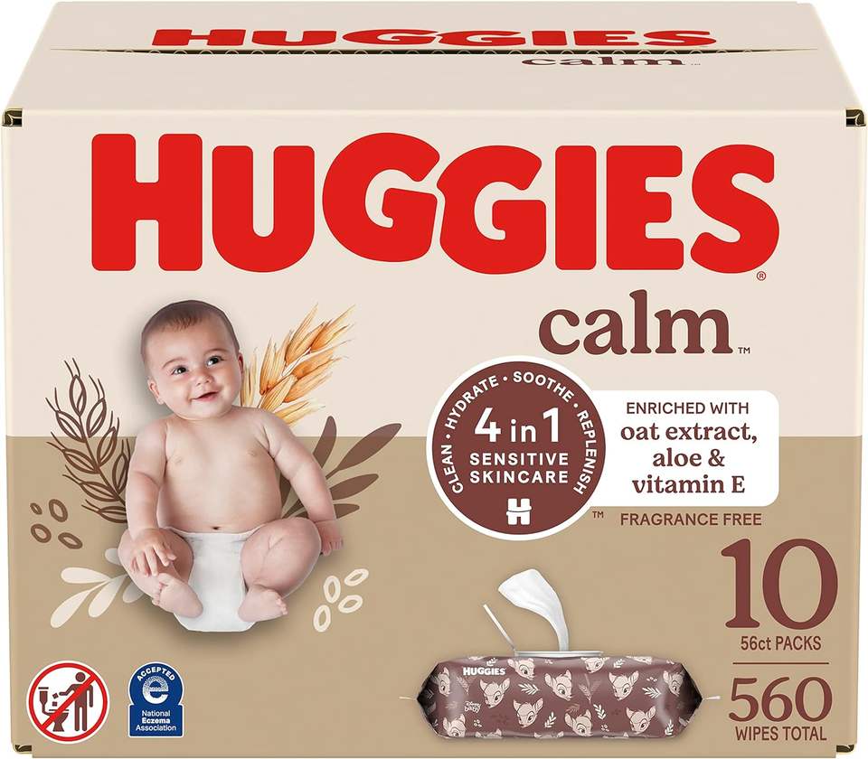 ผ้าเช็ดทําความสะอาดผ้าอ้อมเด็ก Huggies Calm ไร้กลิ่น ไม่ก่อให้เกิดภูมิแพ้ แพ็คปุ่มกด 10 ใบ (รวมผ้าเช็ดทําความสะอาด 560 ใบ)