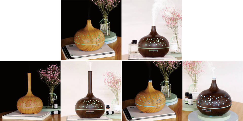 Hui Zhou ชุดเครื่องพ่นไอน้ำอัลตร้าโซนิค,เครื่องพ่นละอองน้ำมันหอมระเหย400มล. พร้อมตัวจับเวลาและการตั้งค่าแสงโดยรอบ7แบบ