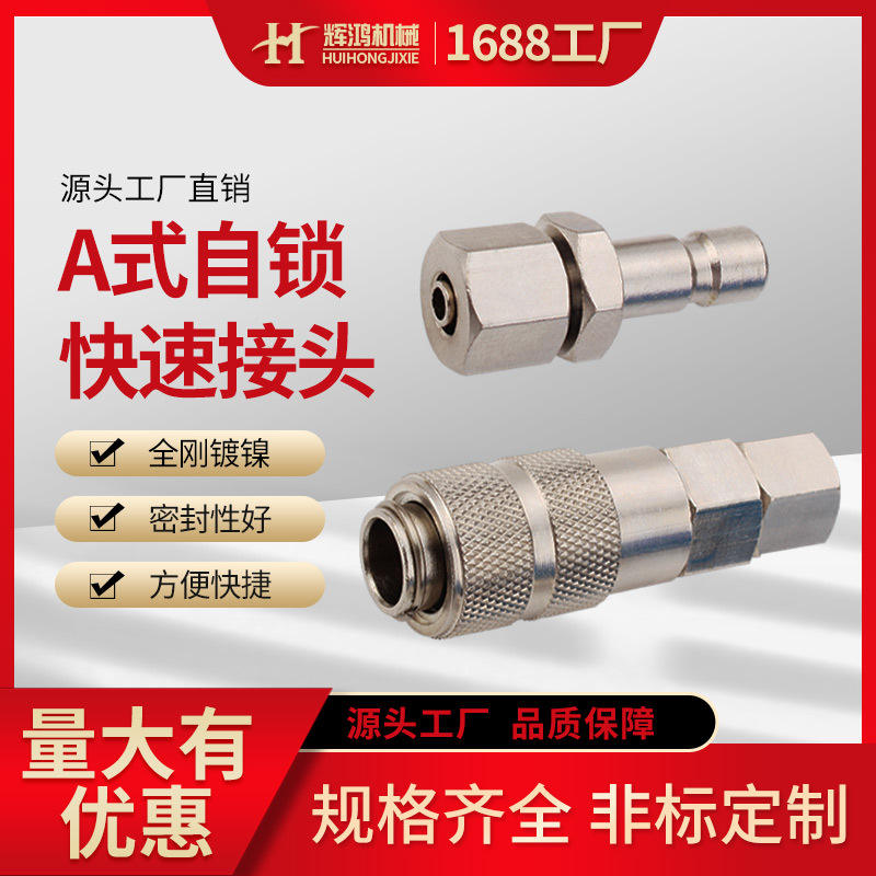 ข้อต่อลมแบบเร็วฮุ่ยหง 6 มม. 1/4 นิ้ว สแตนเลส สำหรับสายลม ใช้กับเครื่องมือคอมเพรสเซอร์