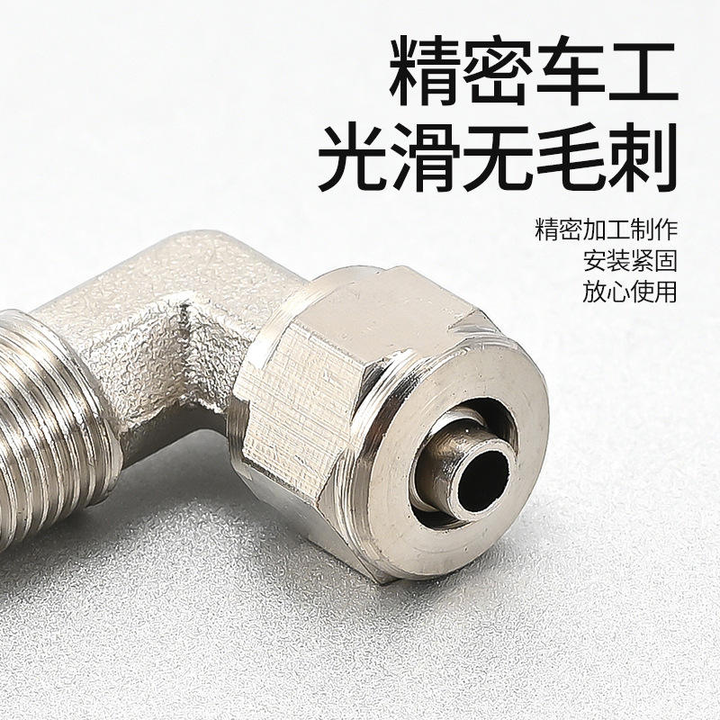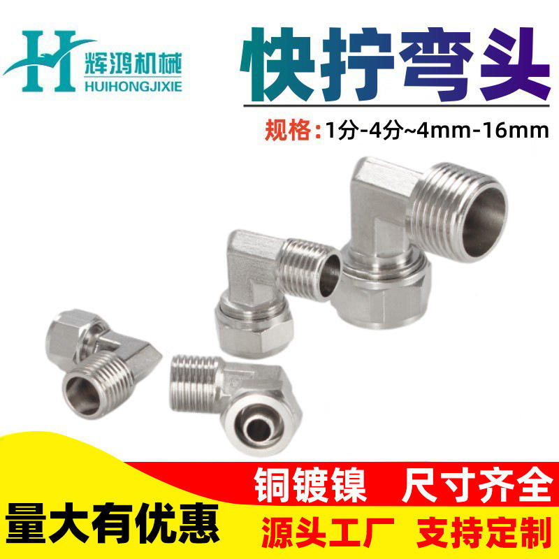ข้อต่อสายลมแบบข้อศอกหมุนเร็ว Huihong ขนาด 10 มม. ชุบทองแดงเคลือบนิกเกิล เกลียวขวา สำหรับติดตั้งท่อแก๊ส