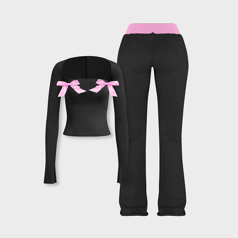 Huili ชุดกีฬาผ้าฝ้ายสองชิ้นสำหรับผู้หญิงกางเกงเล่นกีฬาบล็อกสีมีโลโก้ตามสั่ง