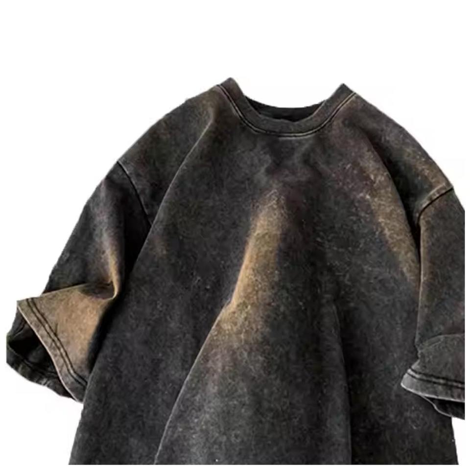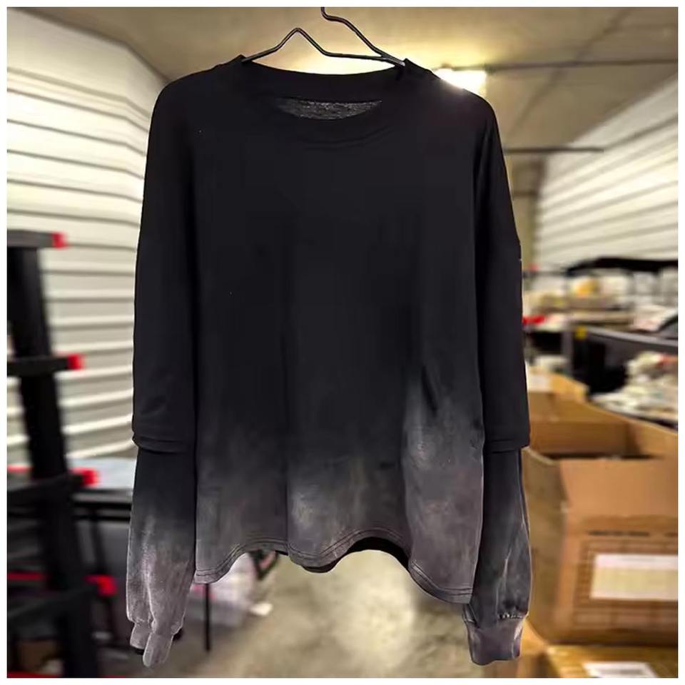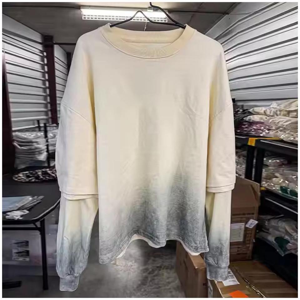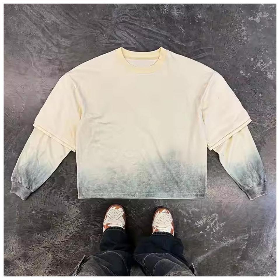 Huilin เสื้อยืดผู้ชายผ้าฝ้าย100% วินเทจ, เสื้อยืดฟอกสีโอเวอร์ไซส์ทรงบ็อกซี่ใส่ได้สองชั้นแขนยาวปรับแต่งได้