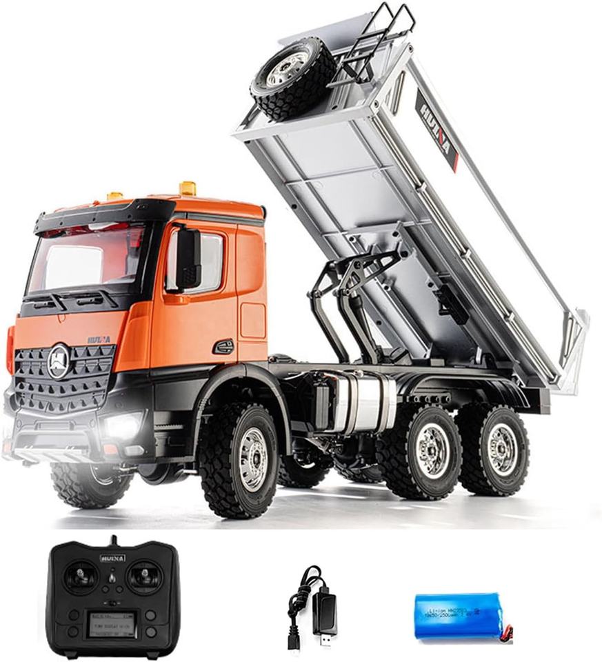 รถดัมพ์ Huina 1598 ขนาด 1:14 14CH ตัวถังกึ่งโลหะ ยกเทท้ายได้ สมจริง ควบคุมด้วยรีโมท 2.4GHZ รถวิศวกรรม พร้อมกล่องพกพา ของเล่นสะสม
