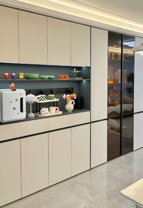 ตู้ไซด์บอร์ดไม้จริงสไตล์โมเดิร์นเรียบง่าย ฮุ่ยปินจู ตู้เก็บไวน์สุดหรู ตู้ติดผนังแบบรวม ตู้เก็บของสำหรับห้องรับประทานอาหารและห้องนั่งเล่น