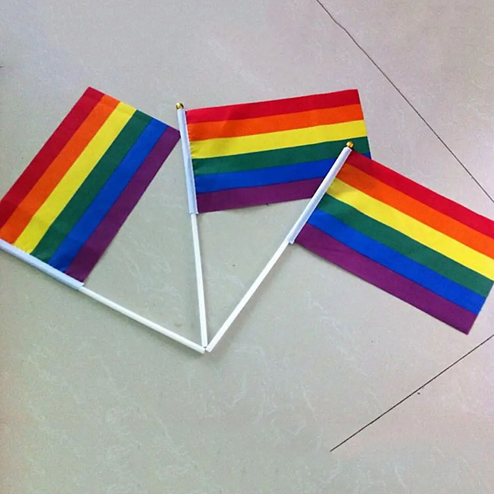 Gahumi ธงความภาคภูมิใจของเกย์ขนาด14*21ซม. ธงสีรุ้งขนาดเล็กพร้อมเสาธงตกแต่งบ้านธงเป็นมิตรกับเกย์