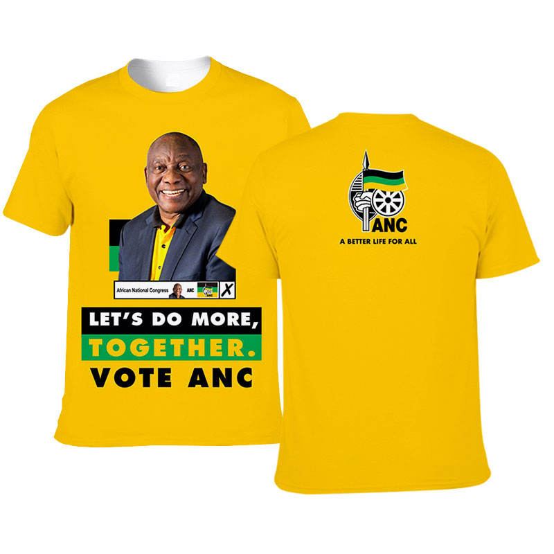 เสื้อยืดเลือกตั้งแอฟริกาใต้พิมพ์ซับลิเมชันโพลีเอสเตอร์/ ผ้าฝ้ายพิมพ์ลายดิจิทัลป้องกันริ้วรอยและนิ่มสุดๆออกแบบได้ตามต้องการ