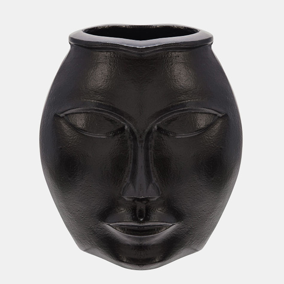 แจกันดอกไม้อลูมิเนียมทรงหน้ามนุษย์ทำจากนิกเกิลสีดำกระถางต้นไม้โลหะและแจกัน