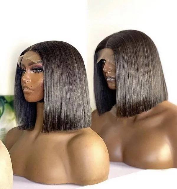 วิกผมแท้ติดลูกไม้ด้านหน้า,วิกผมบ๊อบหน้าจอ13X6โปร่งใสแบบตรงสีกำหนดเอง