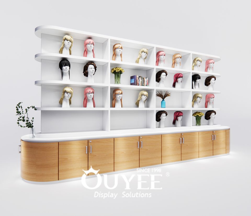 ชั้นวางแสดงวิกผมอุปกรณ์ร้านทำผมของมนุษย์ชั้นวางแสดงวิก