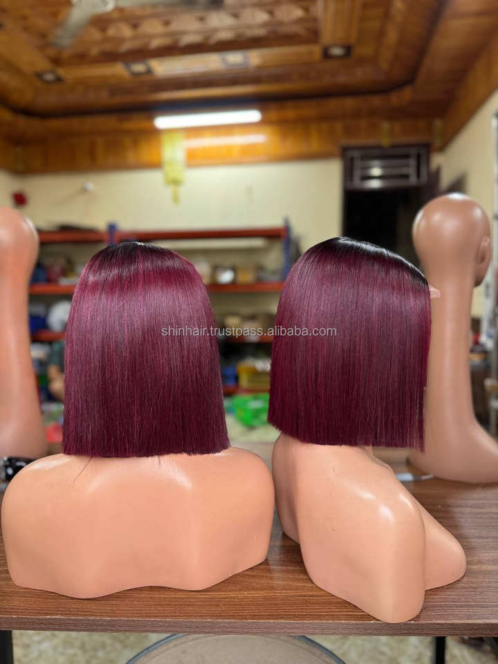 วิกผมแท้วิกผมตรงสีเบอร์กันดีจากเวียดนามที่มีความยาวสั้นด้วยความละเอียดสูงลูกไม้ใส8 " - 32"