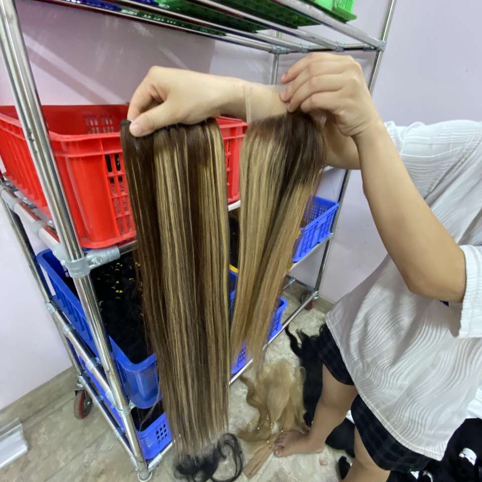 มนุษย์เวียดนามผมเดี่ยววาดหรือวาดคู่หรือซูเปอร์วาดกระดูกตรงผมผ้าและปิดเปียโนสีน้ำตาล100%