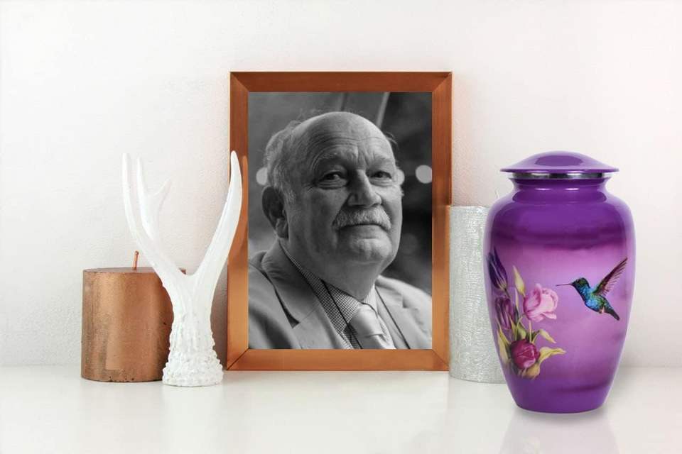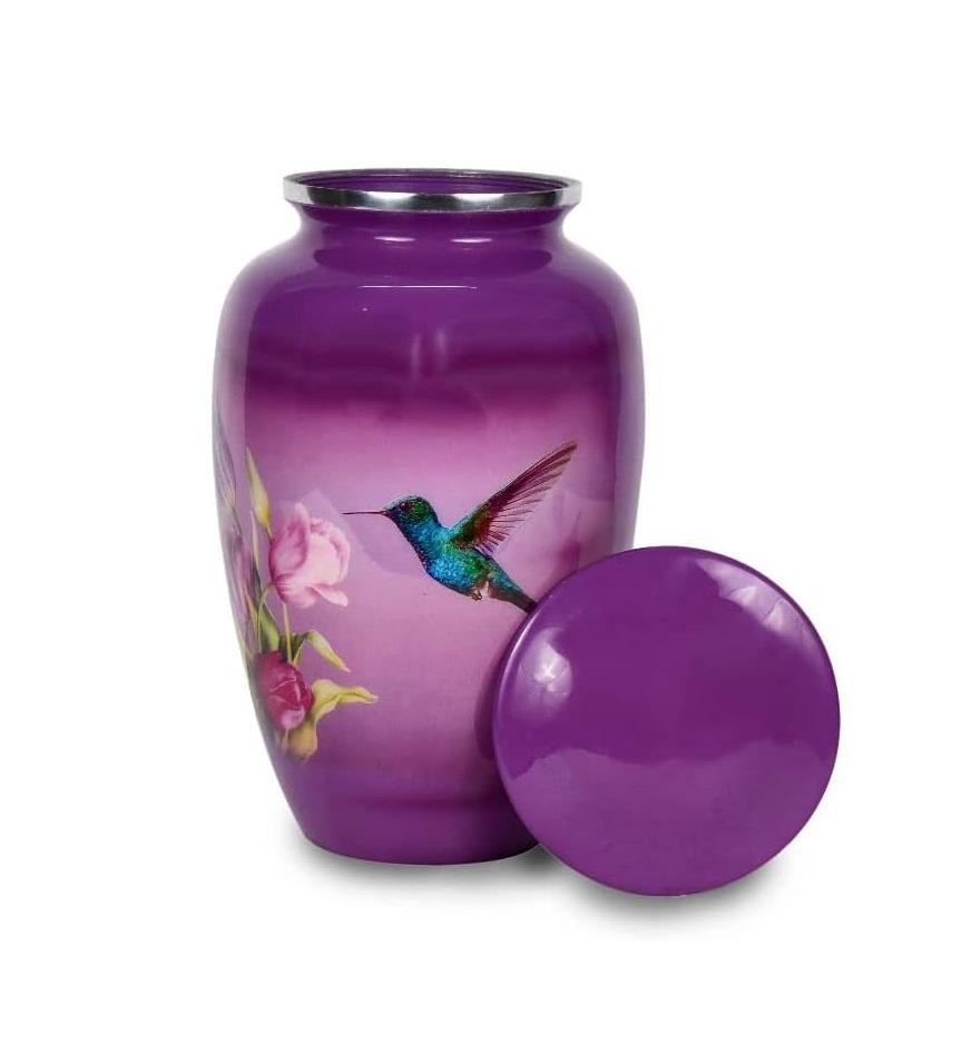โกศบรรจุอัฐิรูปนกฮัมมิงเบิร์ด (โกศสีม่วงขนาดใหญ่รูปนกฮัมมิงเบิร์ด) โกศสำหรับพิธีศพและเผาศพ ขนาด 200 คิวบิกอินเช่