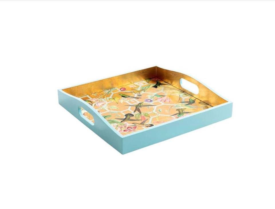 ถาดสี่เหลี่ยมเคลือบโครงตาข่ายนกฮัมมิงเบิร์ดในงาช้าง