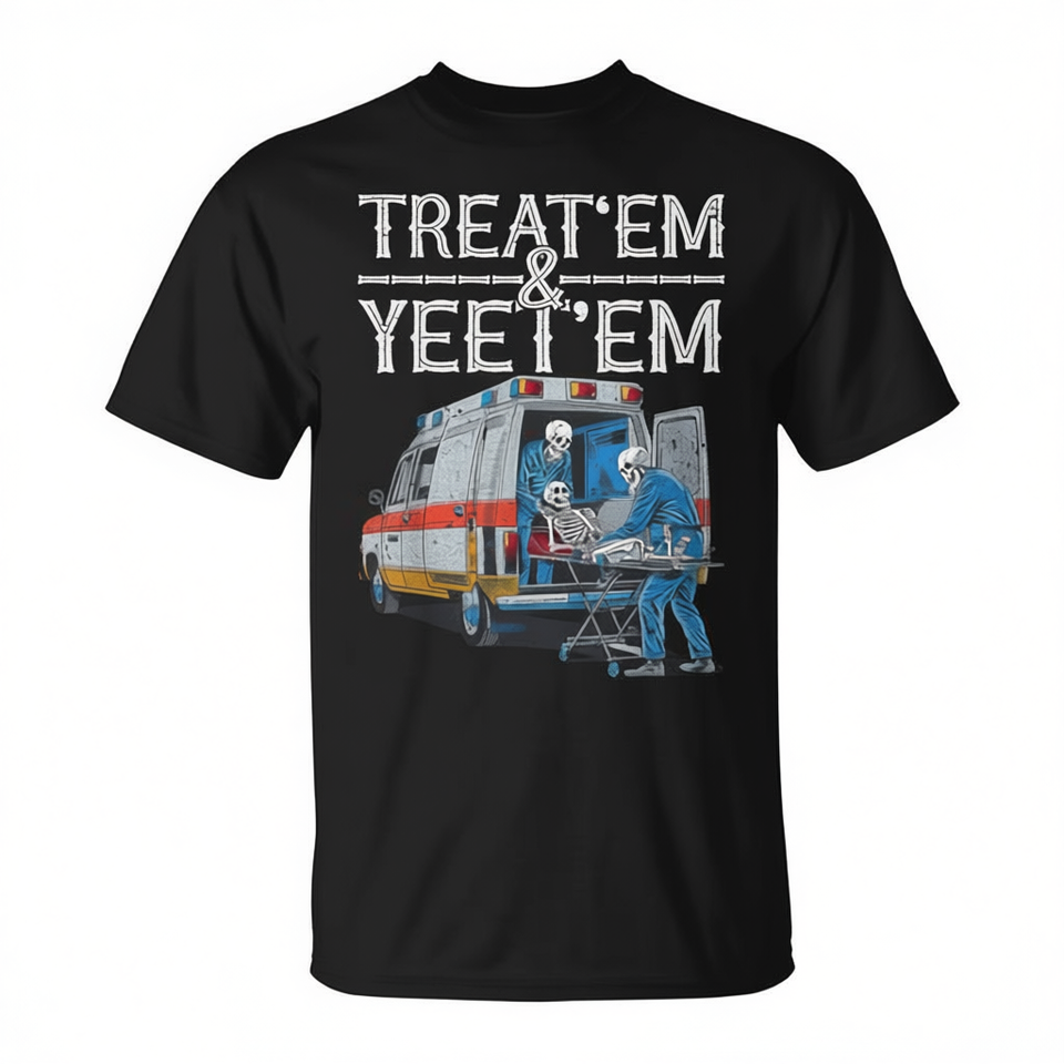 เสื้อยืดลายโครงกระดูกตลกรถพยาบาลสำหรับผู้ใหญ่