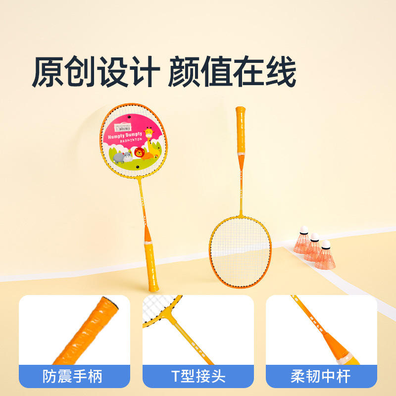 ชุดไม้แบดมินตันฮัมป์ตี้ ดัมป์ตี้สำหรับเด็กอายุ 5-12 ปี อุปกรณ์ฝึกซ้อมที่ทนทาน สีส้ม พร้อมดีไซน์รูปสัตว์