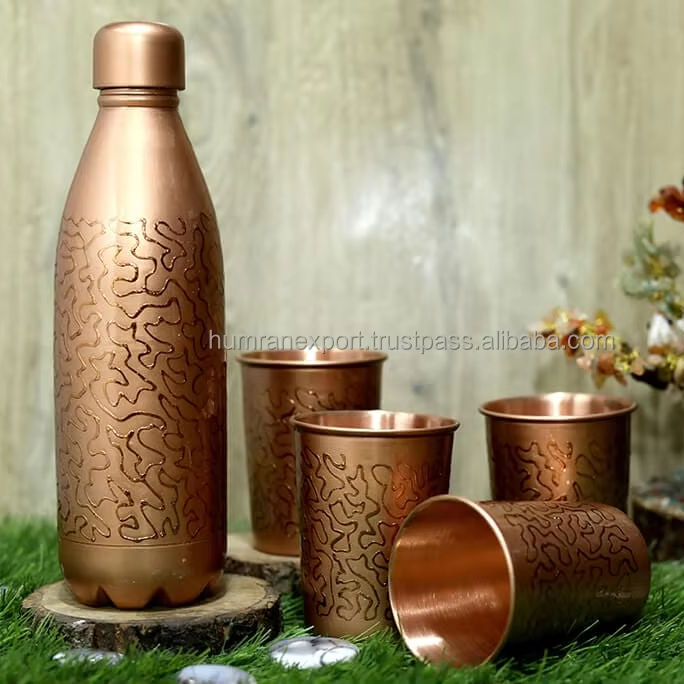 Humran ขวดน้ำทองแดงขนาด900มล. ที่ไม่เหมือนใครงานแฮนด์เมดพร้อมน้ำยาขัดเงาสำหรับใช้ในรถยนต์และงานปาร์ตี้