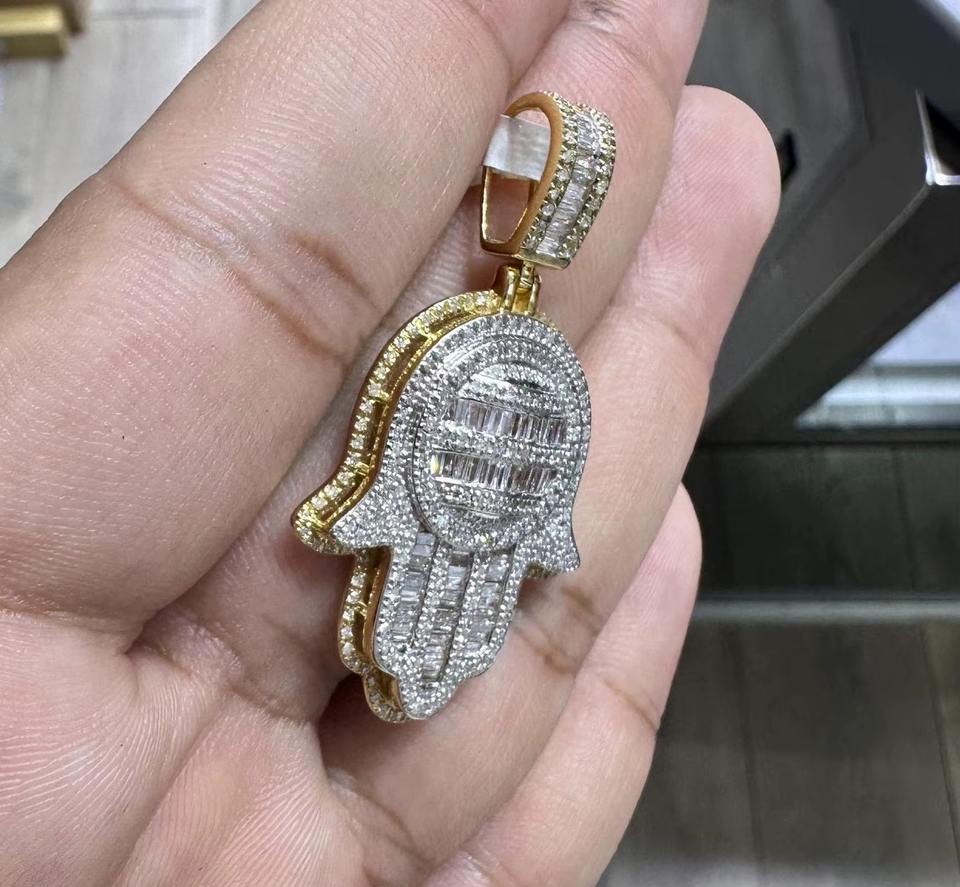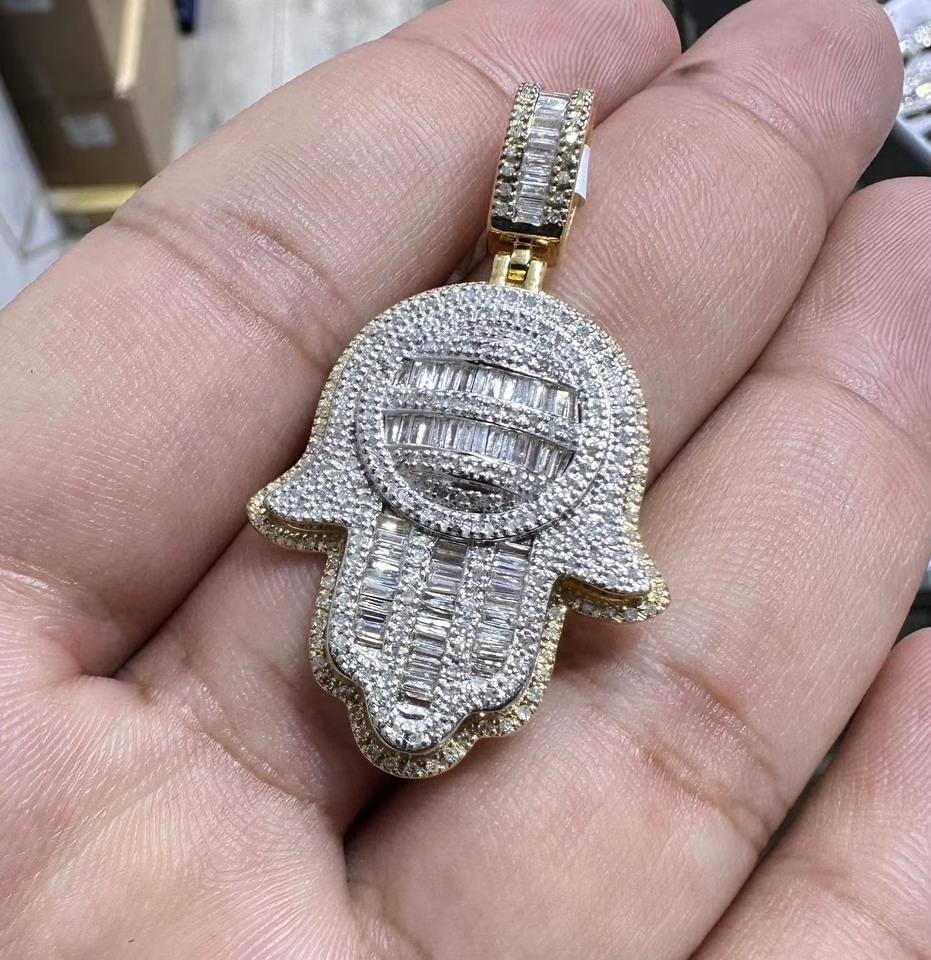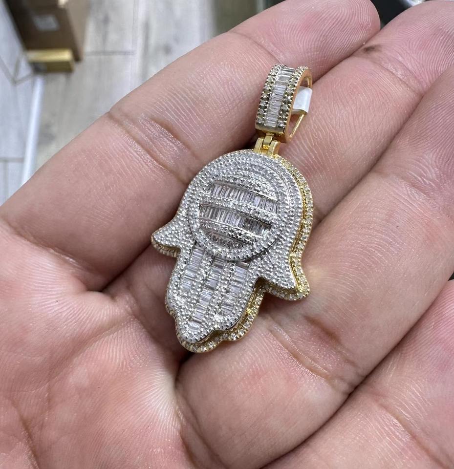 จี้เพชรทรงบาแกตต์และทรงกลมเจียระไนแบบบริลเลียนท์ ประดับด้วยมอสซาไนต์ ทำจากเงินแท้ 925 ของขวัญเครื่องประดับชั้นดี จี้ห้อยคอ