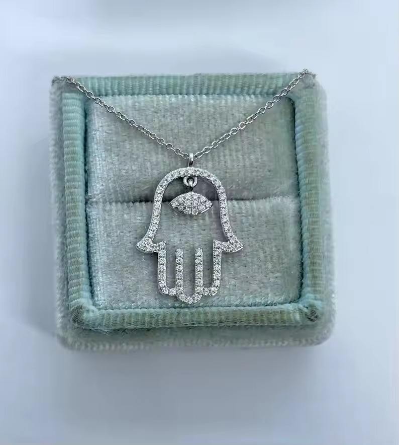 จี้เพชรโมอิสซาไนต์ทรงกลมเงินแท้ 925 งานแฮนด์เมดจากฮุมซ่า เหมาะสำหรับงานพิธีทางศาสนา เครื่องประดับชั้นดี จี้และเครื่องราง