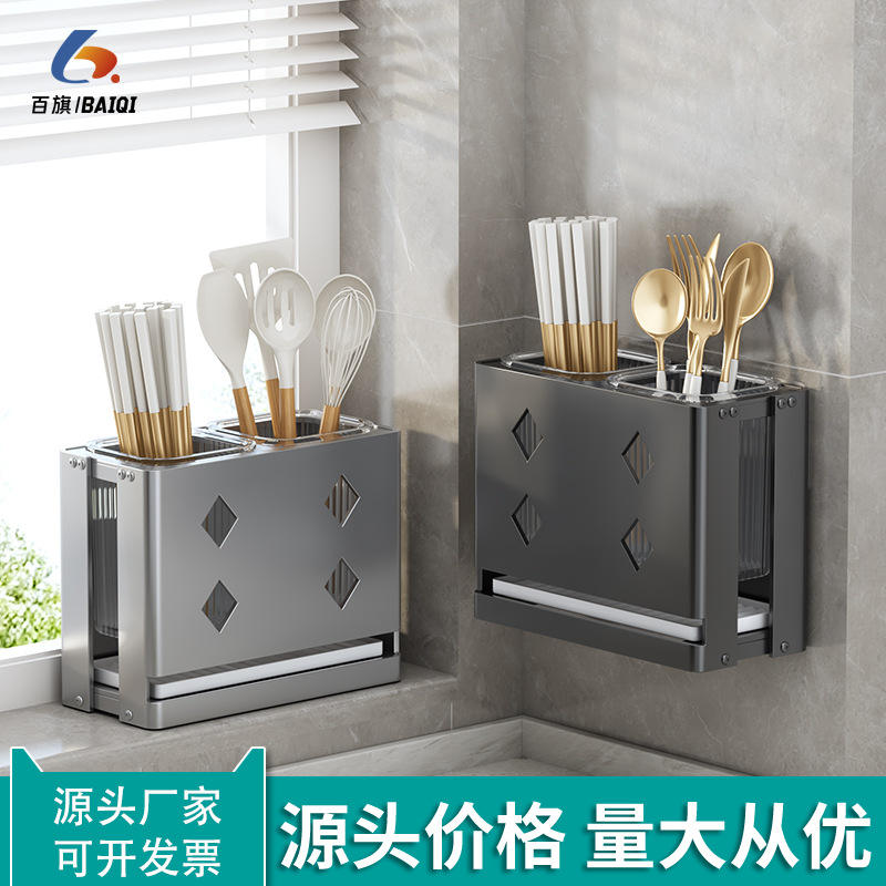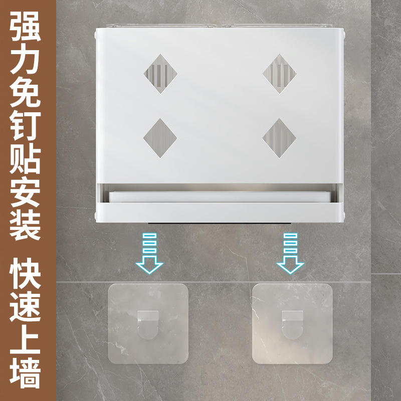 ที่วางตะเกียบติดผนังรูปทรงสี่เหลี่ยมผืนผ้า PP ไม่ต้องเจาะ ใช้สำหรับเก็บของอเนกประสงค์บนเคาน์เตอร์ครัว