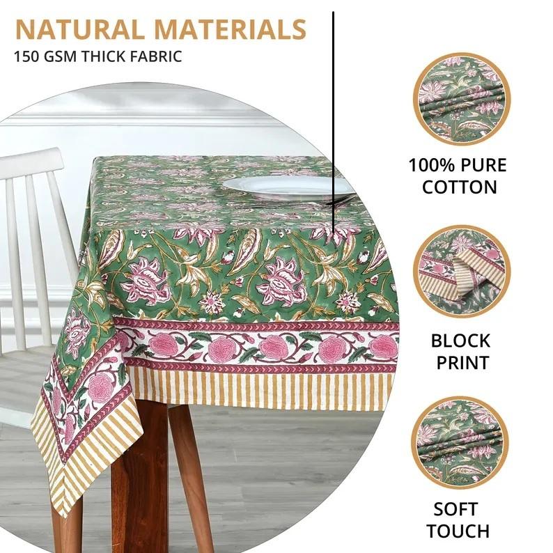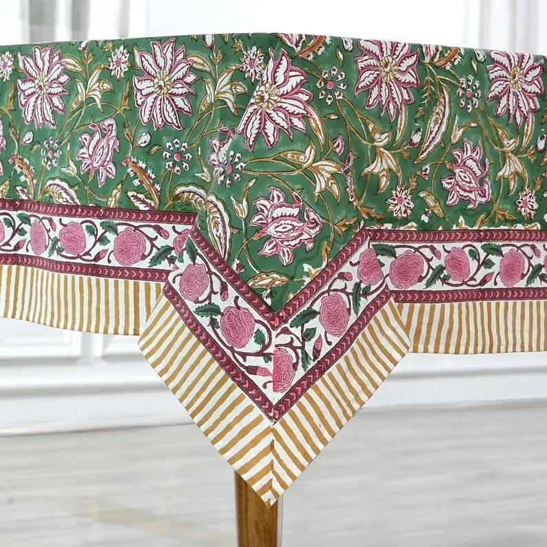 ผ้าปูโต๊ะผ้าฝ้ายพิมพ์ลายดอกไม้สไตล์อินเดียฮันเตอร์สีเขียวผ้าคลุมโต๊ะรับประทานอาหารสุดหรูสำหรับบ้านไร่บ้านทารก