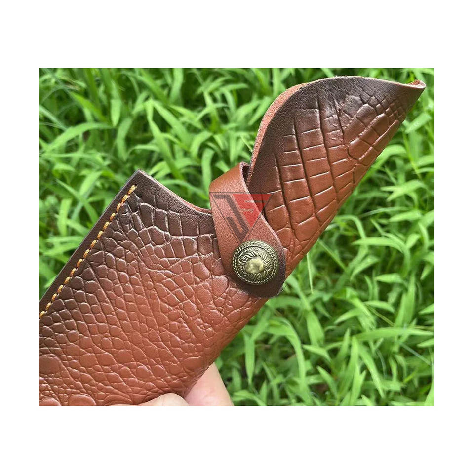 มีดล่าสัตว์ ปลอกหนังจระเข้ คุณภาพสูง ใหม่ ขนาด 10 นิ้ว พร้อมห่วงหนัง ปิดด้วยกระดุมทองเหลือง รับผลิตแบบ OEM ODM ปรับแต่งได้