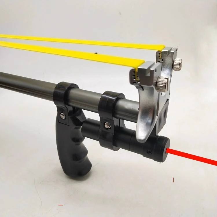 หนังสติ๊กยิงสัตว์พร้อมหัวโลหะ ด้ามยาวปรับได้ แสงเลเซอร์สีแดง ยางยืดความแม่นยำสูง น้ำหนัก 500 กรัม สำหรับล่าสัตว์ปีก