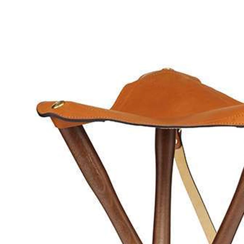 เก้าอี้ไม้พร้อมที่นั่งหนังเก้าอี้กลางแจ้งเก้าอี้สามขาเก้าอี้ล่าสัตว์