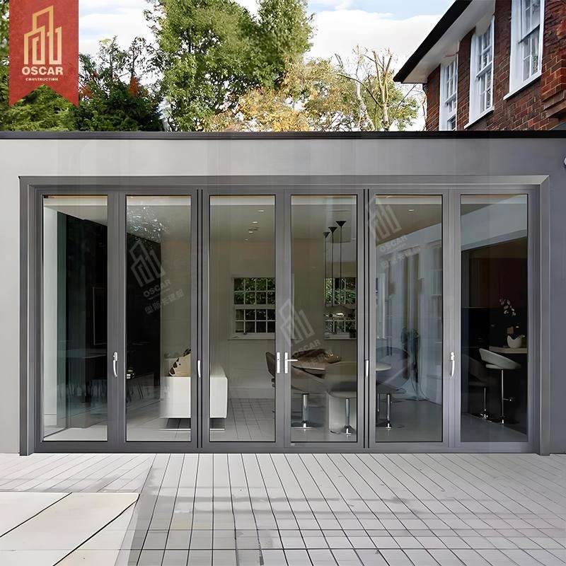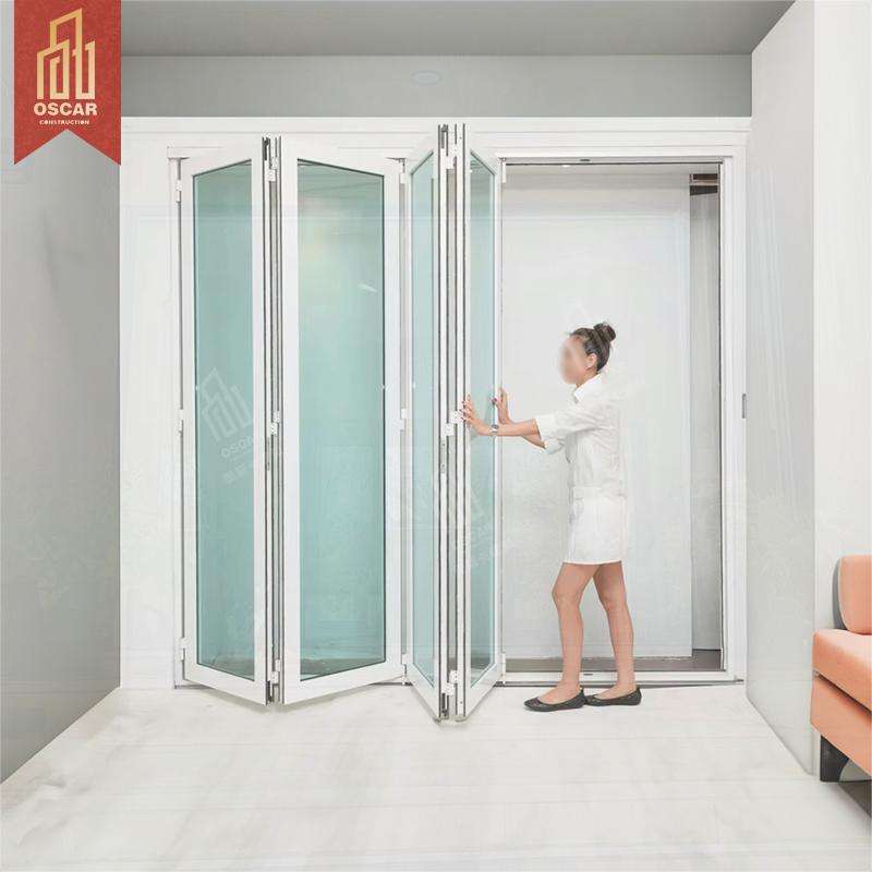 ตัวแบ่งแบบพับได้ป้องกันแรงกระแทกจากพายุเฮอริเคนห้องอาบน้ำฝักบัวห้องน้ำลานกระจกอลูมิเนียมบานพับได้ชิ้นส่วนประตูพับใช้ในบ้าน