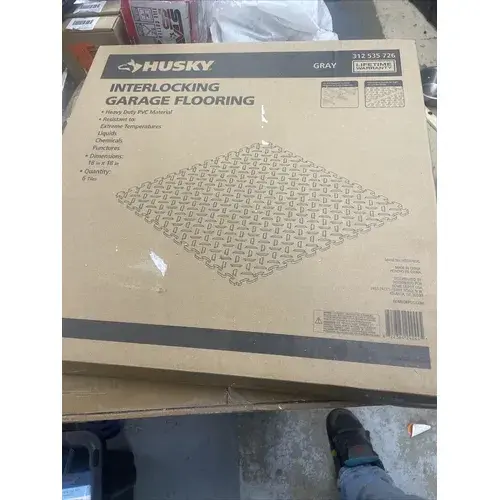 18.4ฮัสกี้ x 18.4ในกระเบื้องปูพื้นโรงรถพีวีซีสีเทา6แพ็ค/13.95ตร. ฟุตกล่องอุปกรณ์เสริมพื้น