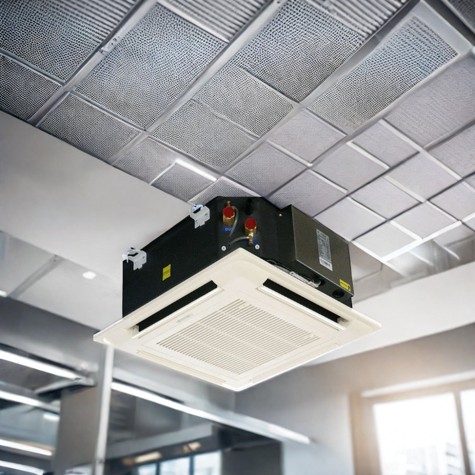 เครื่องปรับอากาศแบบฝังฝ้าเพดาน 4 ทาง ระบบแอร์ต่ออินเวอร์เตอร์แบบน้ำ แฟนคอยล์ยูนิต 2 ท่อ ราคาสำหรับปั๊มความร้อน