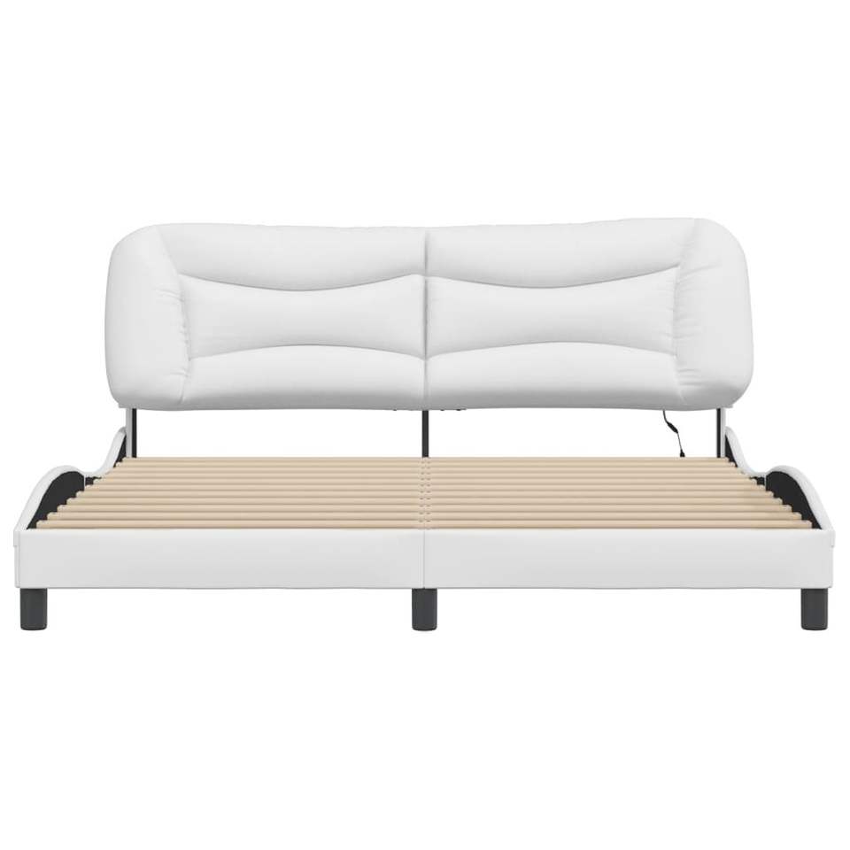 โครงเตียงหุ้มเบาะสีขาว ขนาด 72"x83.9" พร้อมไฟ LED ไม่รวมที่นอน