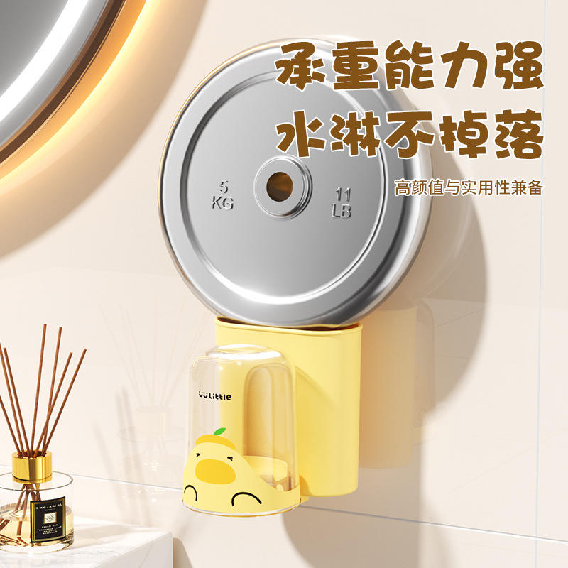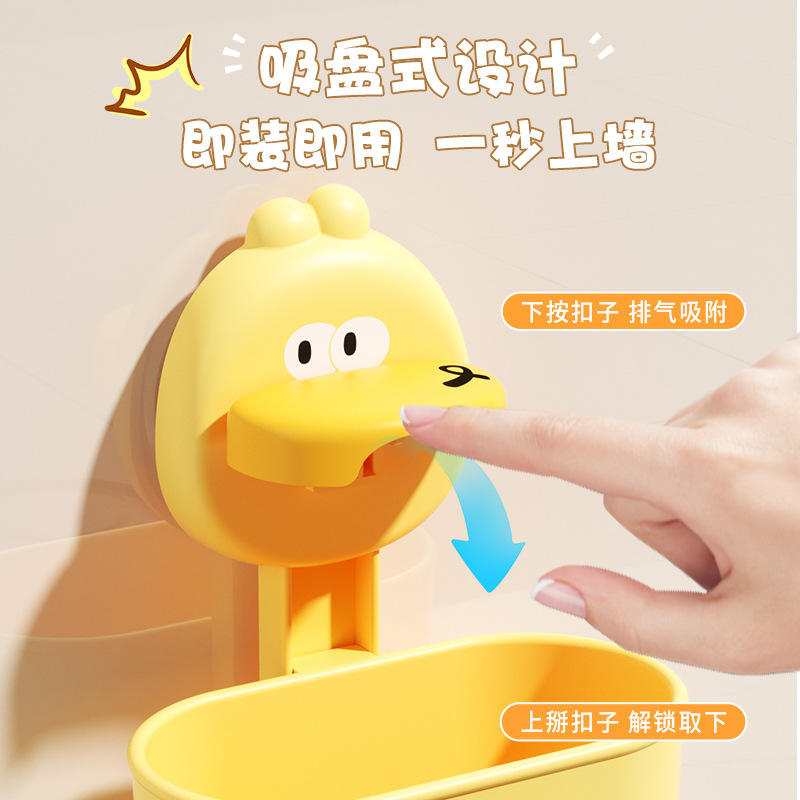 ที่วางแปรงสีฟันแบบติดผนังพร้อมถ้วยดูดสุญญากาศลายการ์ตูนน่ารักสำหรับเด็ก ถ้วยพลาสติกเดี่ยวสำหรับใส่ยาสีฟันในห้องน้ำ