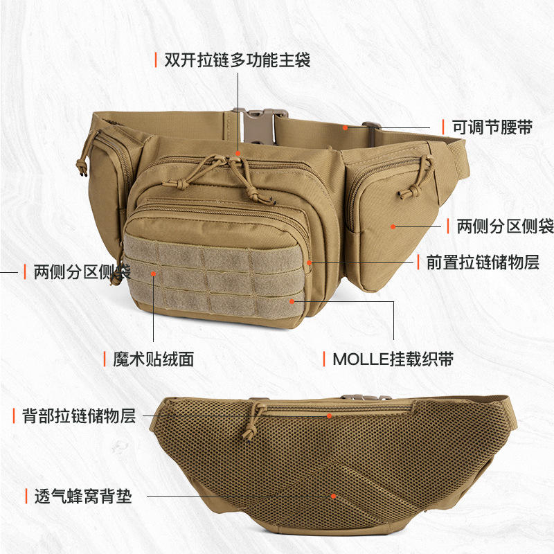 Hy8272 กระเป๋าคาดเอวยุทธวิธีสีกากีน้ำหนักเบากระเป๋าใส่โทรศัพท์สำหรับเล่นกีฬากลางแจ้งพร้อมสายสะพายไหล่สำหรับผู้ชายเดินป่าปีนเขา
