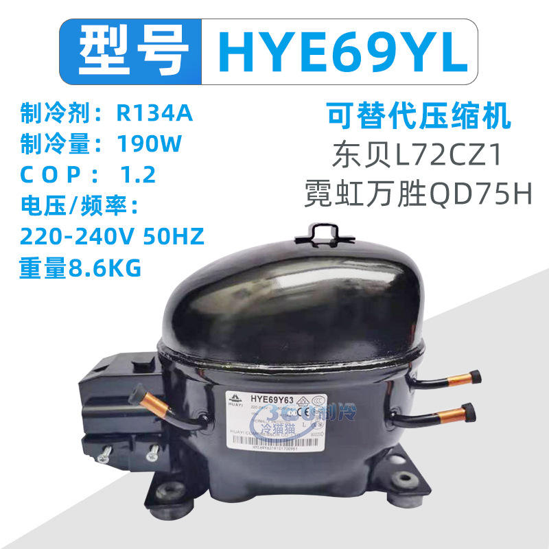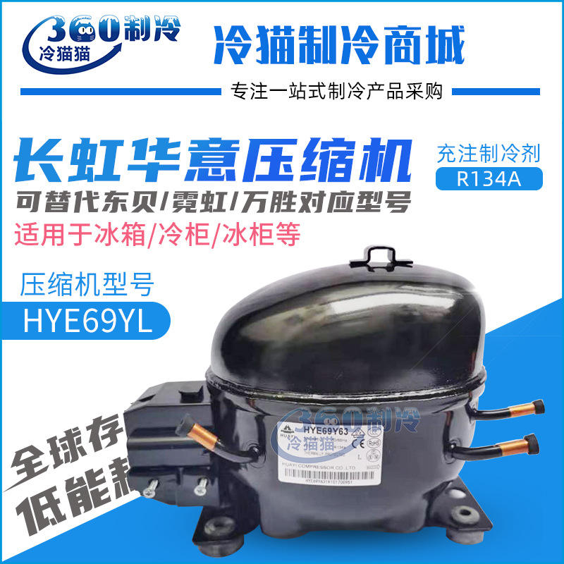 คอมเพรสเซอร์ตู้เย็น HyE69YL63 แบบปริมาตรคงที่ ประสิทธิภาพสูง อะไหล่ทดแทนสำหรับ Changhong Huayi