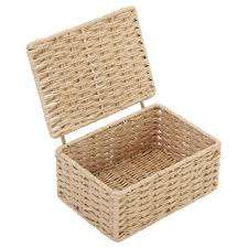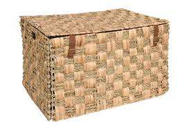 กล่องเก็บของผักตบชวาที่มีกรอบเสริมและฝาปิดสำหรับพื้นที่ใช้สอยด้วยดอกบัวสีน้ำเงิน