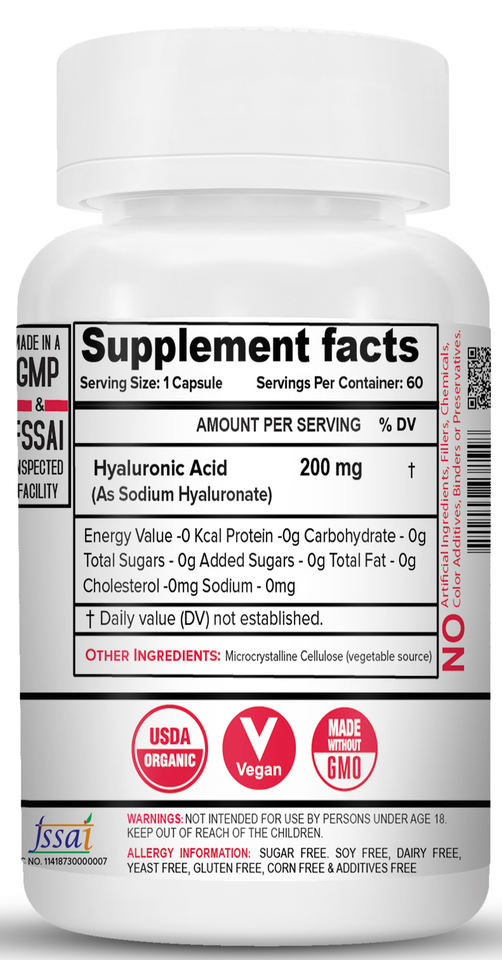 อาหารเสริมกรดไฮยาลูโรนิกเข้มข้นสองเท่า200มก. อาหารเสริมกีฬาสำหรับผู้ใหญ่รูปแบบยา60แคปซูล