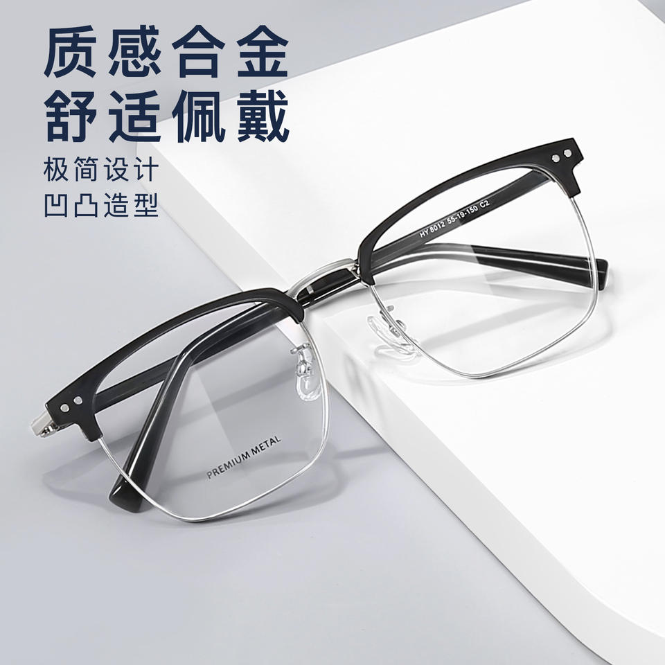 กรอบแว่นตาโลหะผสมไฮบริด 55-19-150 C2 ทรงสี่เหลี่ยมเต็มกรอบ ดีไซน์ย้อนยุค ขาแว่นยืดหยุ่นได้ สำหรับผู้ใหญ่ทุกเพศ เวินโจว
