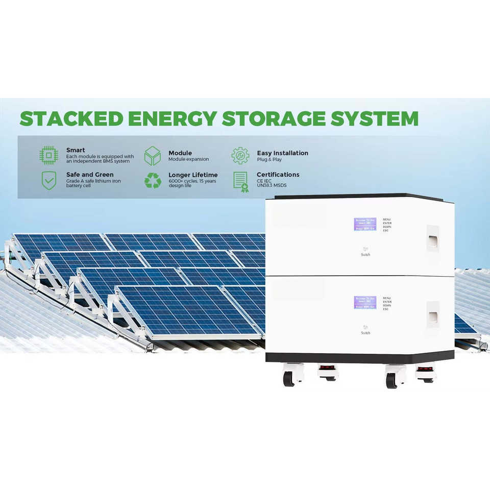 แบตเตอรี่พลังงานแสงอาทิตย์แบบไฮบริด IP65 แยกส่วน 30 กิโลวัตต์ชั่วโมง แบบเรียงซ้อนได้ 51.2 โวลต์ 48 โวลต์ 300 แอมป์ชั่วโมง Lifepo4 พร้อมพอร์ตสื่อสาร CAN สำหรับใช้ในบ้าน