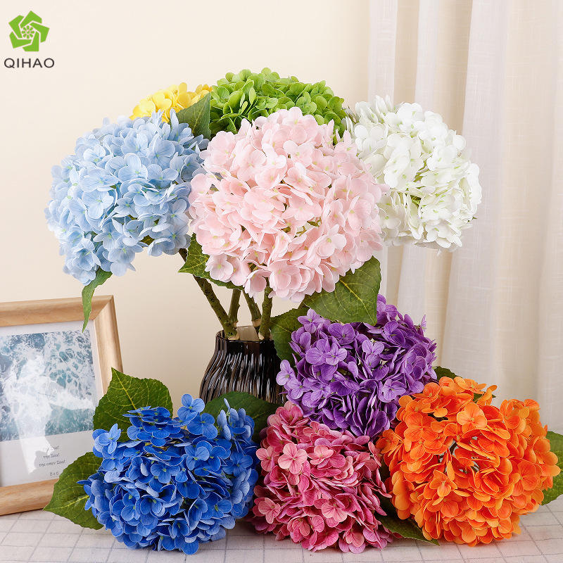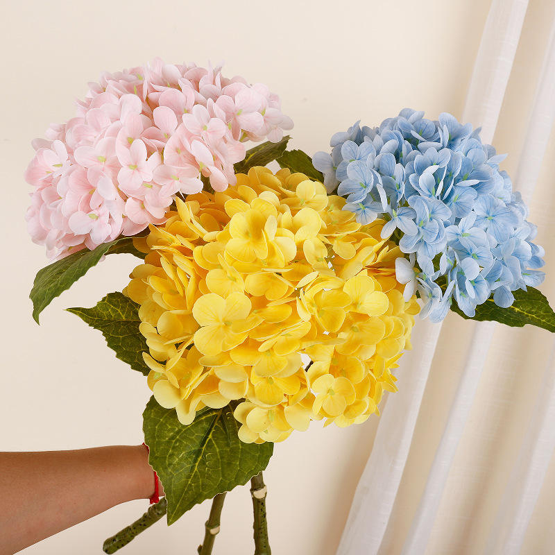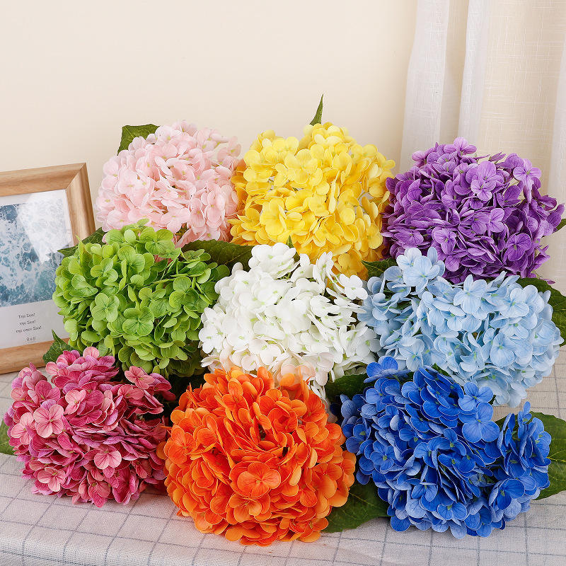 ดอกไฮเดรนเยียประดิษฐ์ในแจกัน ดอกไม้จำลองคุณภาพสูง สำหรับตกแต่งงานแต่งงาน ตกแต่งห้องนั่งเล่น ทำจากพลาสติกและลวดอ่อน
