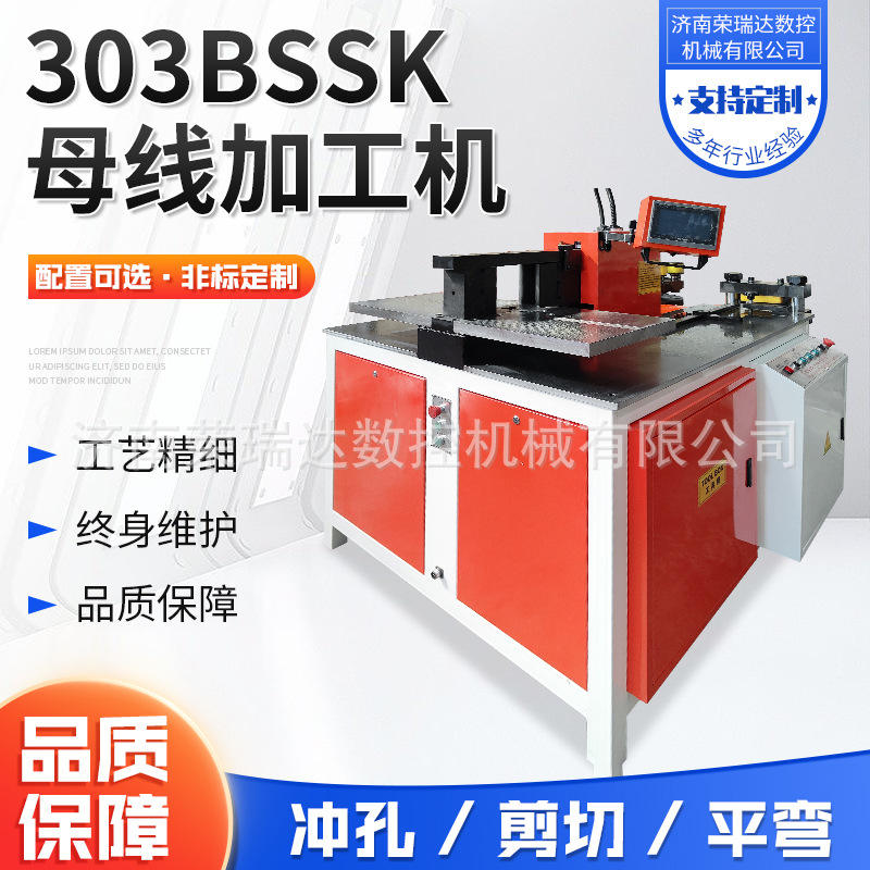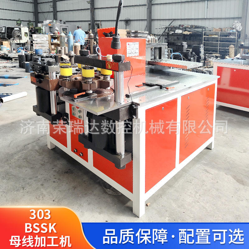 เครื่องจักรแปรรูปบัสบาร์ไฮดรอลิก 303BSSK CNC แบบสาม-in-หนึ่ง สำหรับตัด เจาะ งอ และเฉือน บัสบาร์ทองแดงและอะลูมิเนียม
