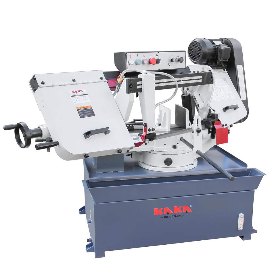 เลื่อยสายพานตัดโลหะ 4 สปีด 2 แรงม้า 220 โวลต์ เฟสเดียว ขนาด 10x18 นิ้ว ฐานหมุนได้ ตัดเฉียง 45 องศา สำหรับเหล็ก