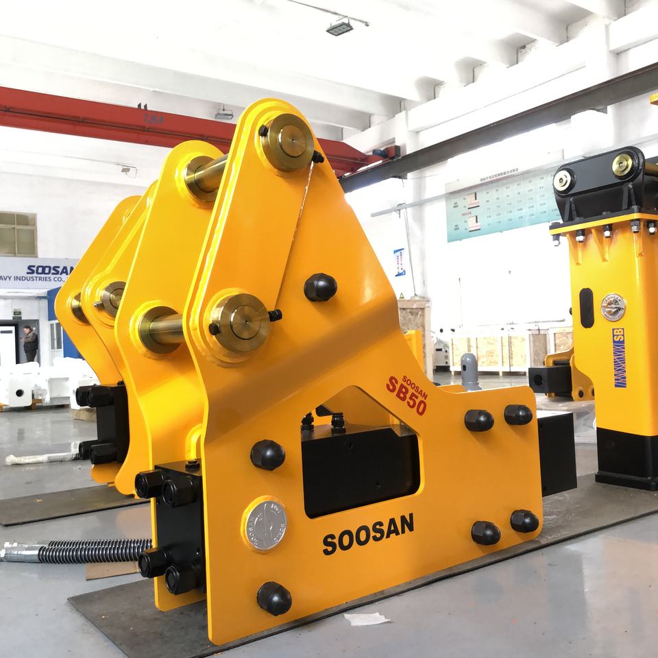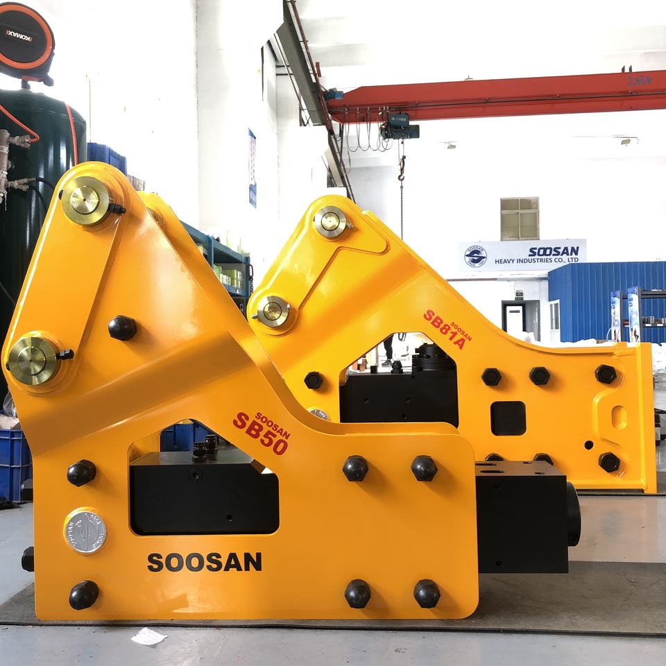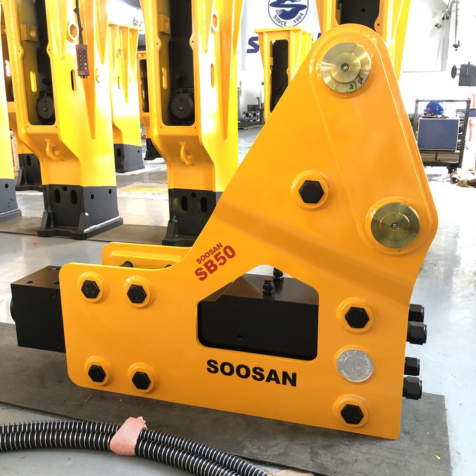 Hydraulic Breaker SOOSAN SB50 Side Type for 11-16 Ton Excavators and Backhoe Loaders New Condition with 100mm Chisel and hoses