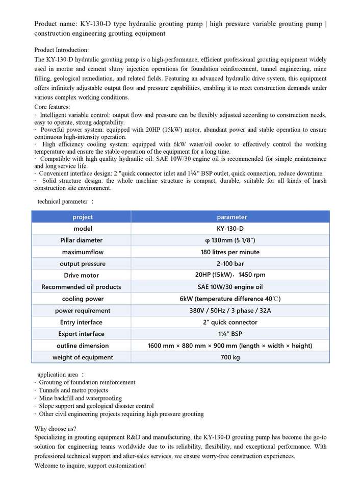 อัตราการไหลของน้ำปูนซีเมนต์ 180 ลิตร/นาทีผลผลิต